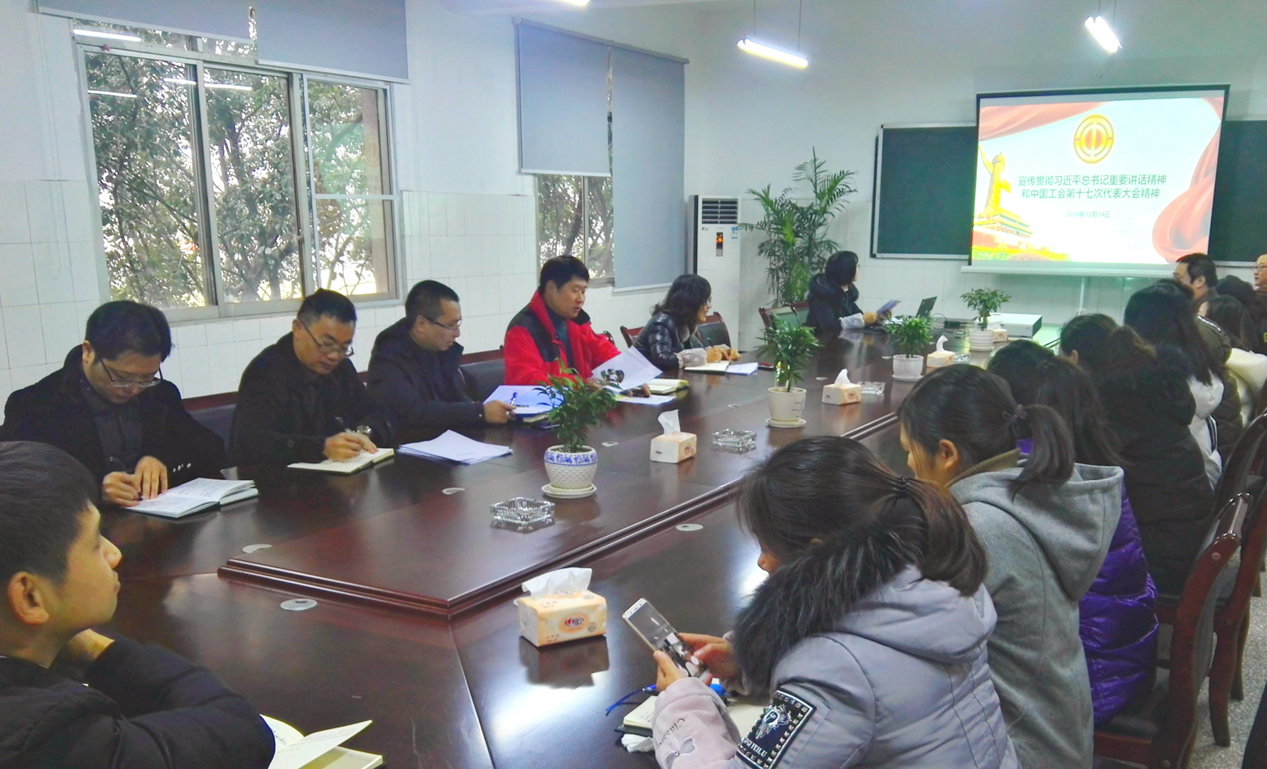 2018年10月22日至26日,中國工會第十七次全國代表大會勝利召開。10月29日,習近平總書記同全總新一屆領導班子成員集體談話并發(fā)表重要講話。根據(jù)省總工會、市總工會、集團工會相關文件的精神和要求,12月14日,兩江新城公司工會召開學習貫徹習近平總書記重要講話精神和中國工會第十七次代表大會精神的會議。會議由工會主席劉志剛主持,在家工會會員參與學習。