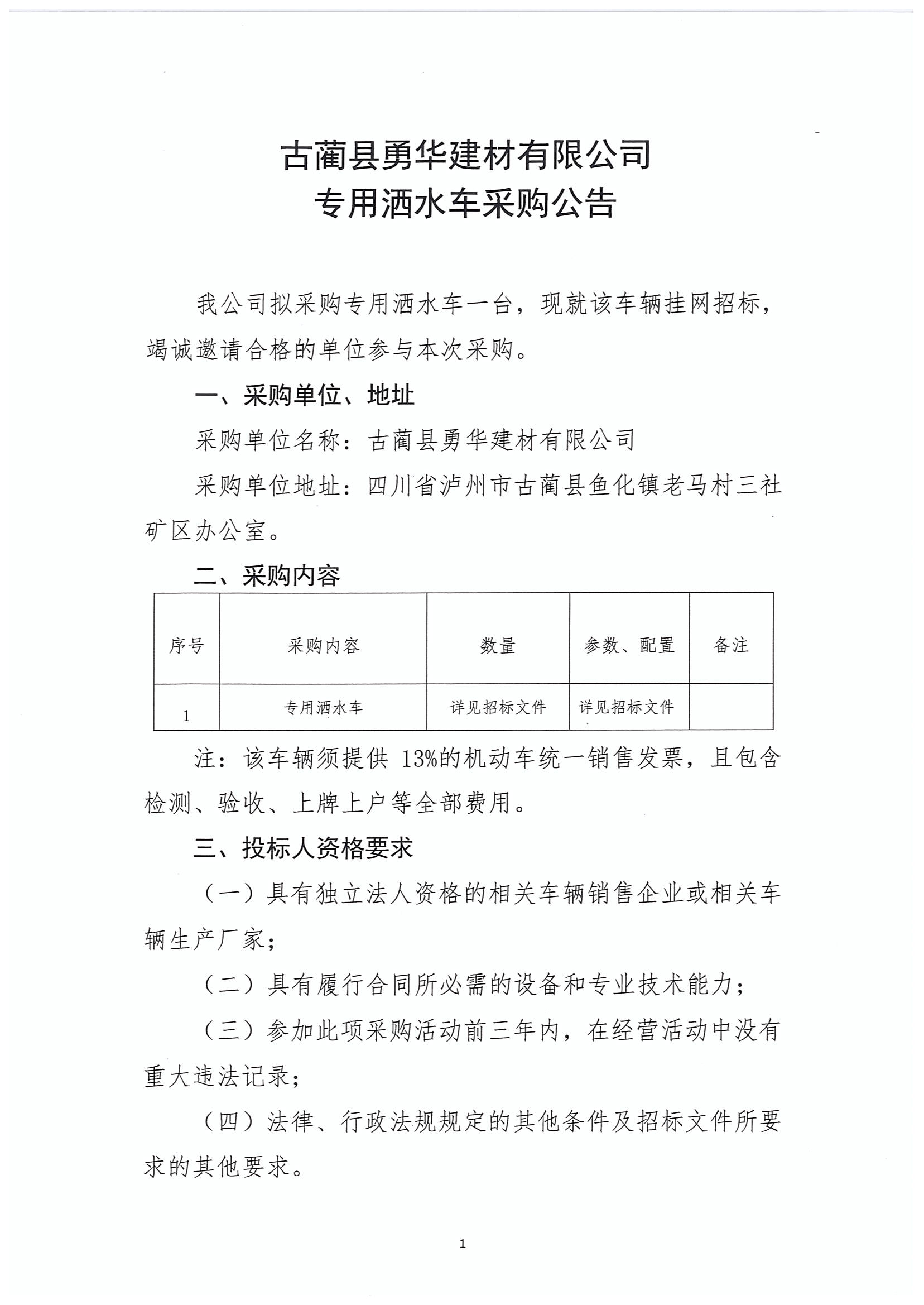 專用灑水車采購(gòu)公告